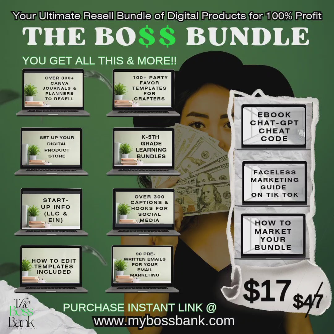 AND DONT FORGET TO JOIN The Boss Bank Facebook group so you can get ongoing assistance after purchasing your bundle. Congratulations on your purchase!